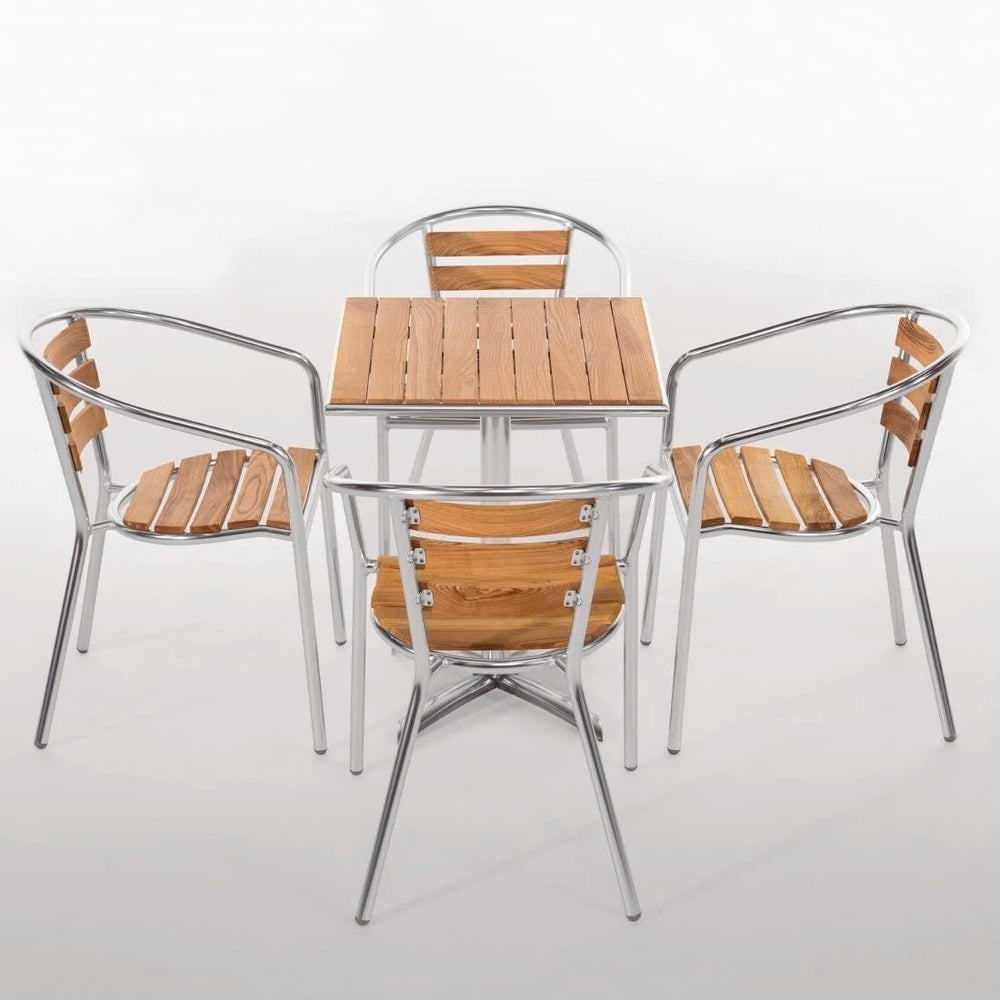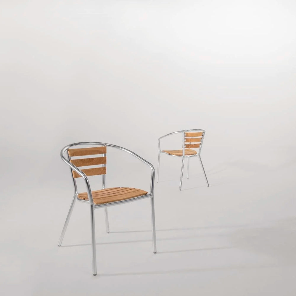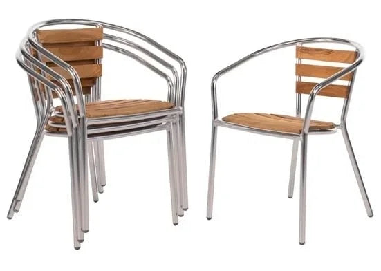 Aluminium - Eschenholzarmlehnstühle Bolero stapelbar - 4 Stück