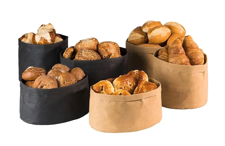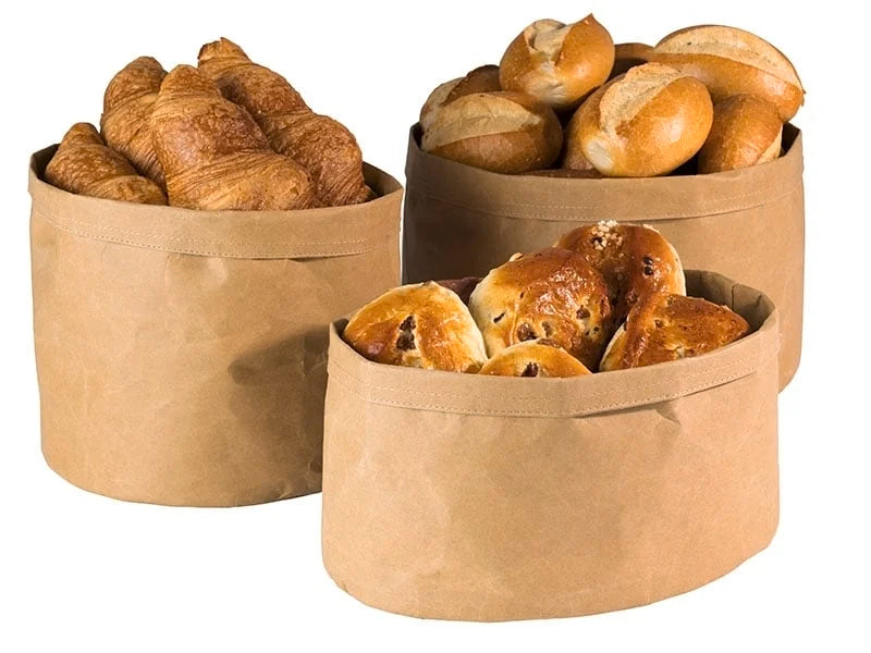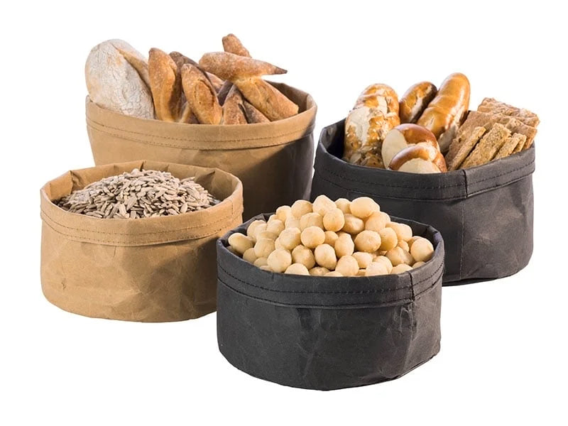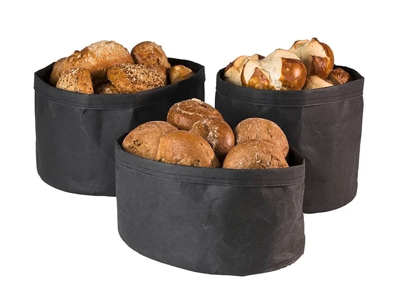 Die Brottaschen PAPERBAG der Marke APS ist aus einem ganz besonderen und robusten Kraftpapier angefergigt. Das außergewöhnliche Design in leicht zerknitterten Lederoptik strahlt eine rustikale, aber dennoch charmante Ausstrahlung aus. Durch die einzigartige Eigenschaft des Kraftpapiers sind die PAPERBAGS wasserfest und können in der Höhe umgekrämpelt werden. Mit der stabilen, runden oder auch ovalen Form können die Brottaschen nicht nur zum Aufbewahren von Broten und Börtchen verwendet werden, sondern auch für Getreide, Müslis o.ä.