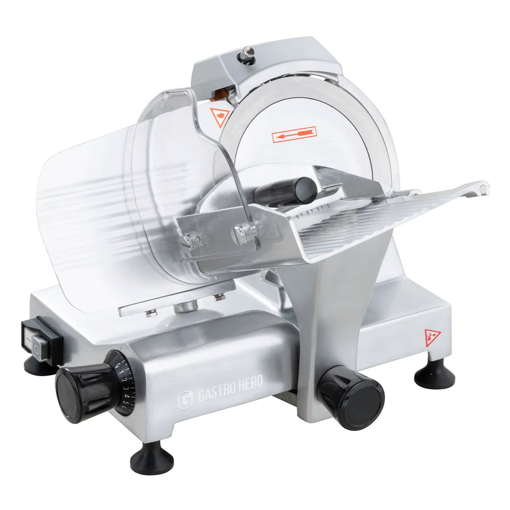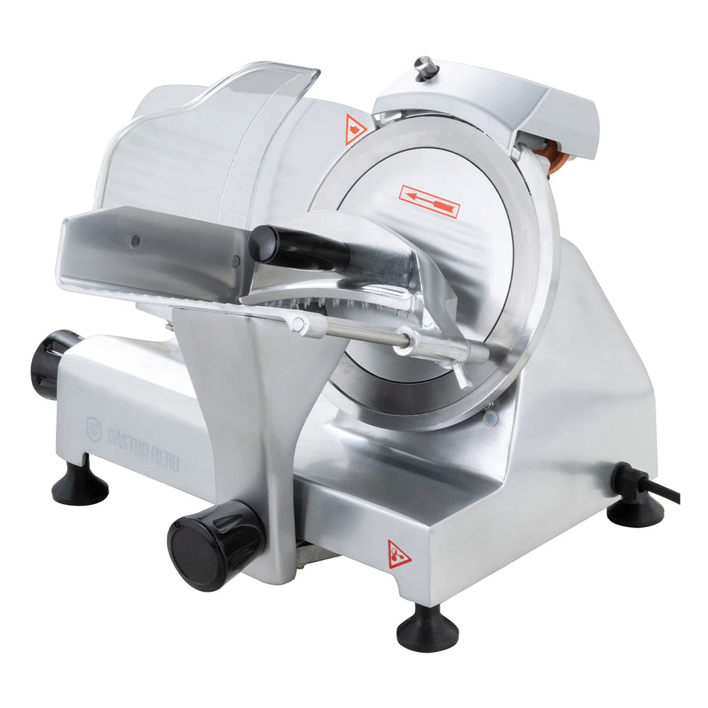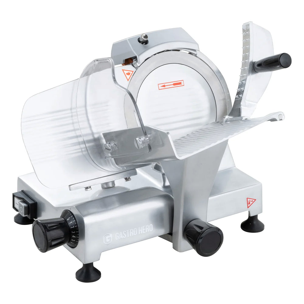 Ob nun Kochschinken oder Wurst - die Aufschnittmaschinen von GastroHero sind universell einsetzbar. Die robuste Bauweise ist extra auf hohe Belastungen im Arbeitsalltag ausgelegt. Zudem zeichnen sich unsere Schneidemaschinen durch leichte Handhabung und eine einfache Reinigung aus.