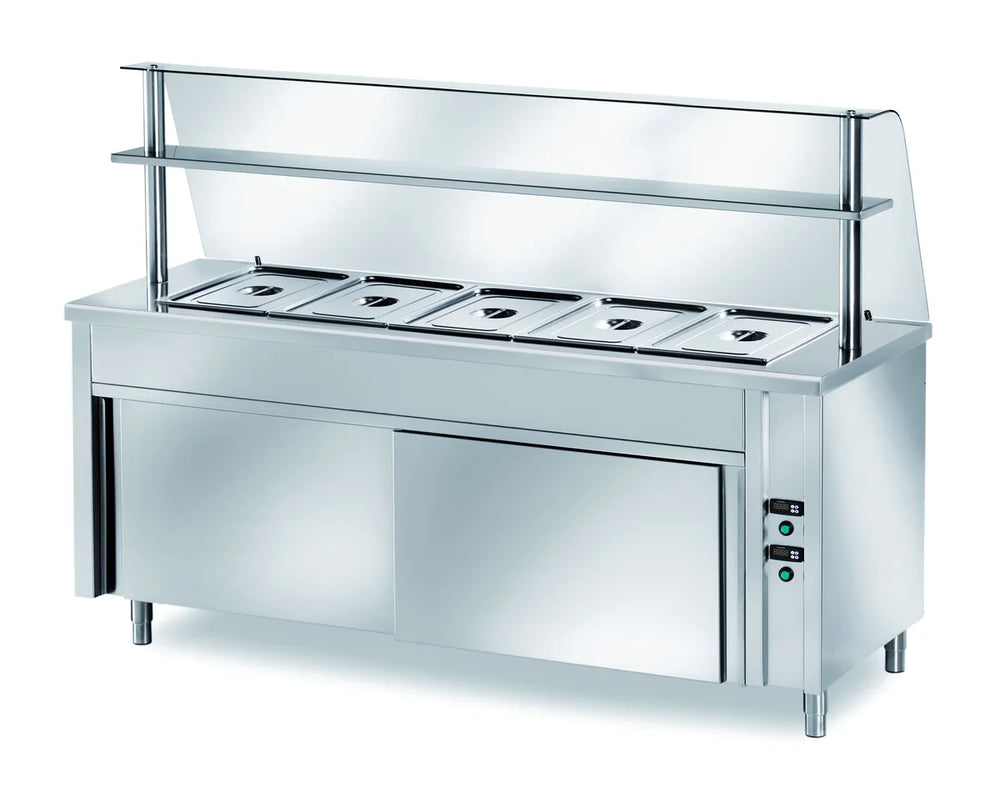 Selbstbedienungswarmhaltetisch PROFI belüftet mit Schiebetüren 2000x700x890 - 5x GN 1/1