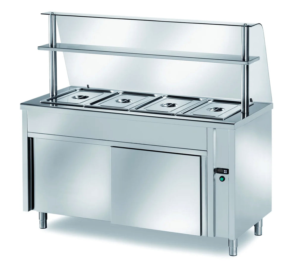 Ausgabe Warmhaltetisch PROFI neutral mit Schiebetüren und Glasaufsatz 1500x700x1400 - 4x GN 1/1