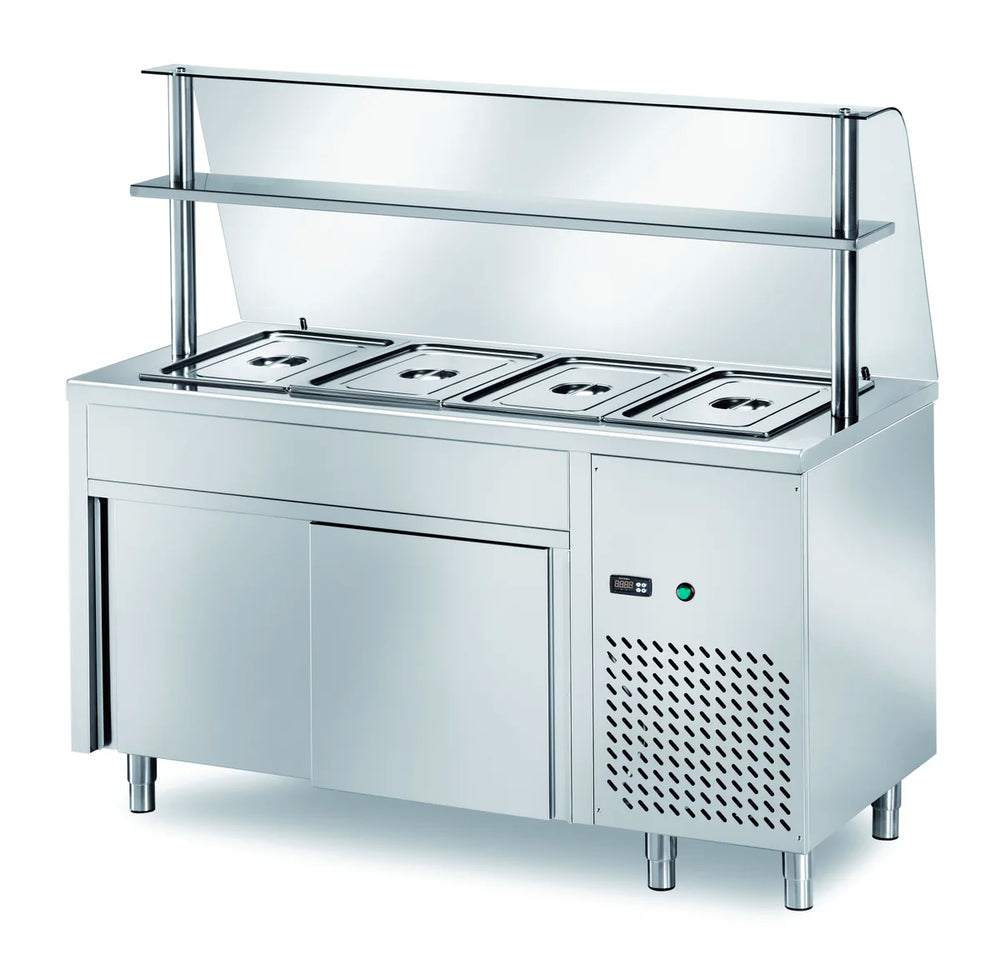 Ausgaben Kühltisch PROFI neutral mit Schiebetüren und Glasaufsatz 1500x700x1400 - 4x GN 1/1