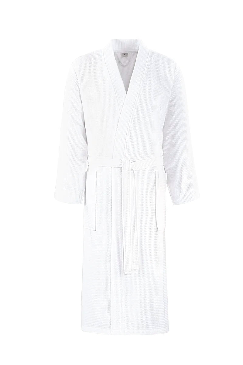 Der angenehm leichte Bademantel aus hochwertigem Waffelpiqué eignet sich optimal für den täglichen Gebrauch in Hotels, Spas und Wellness-Einrichtungen. Der Bademantel aus reiner Baumwolle ist besonders saugfähig. Der weiße Bademantel im Kimono Schnitt verleiht Ihren Gästen ein besonderes Wohlgefühl.