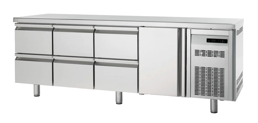 Unsere Bäckereikühltische aus der Premium-Serie überzeugen mit modernem Design, hoher Funktionalität, Langlebigkeit sowie einer hochwertigen Verarbeitung. Dank des idealen Temperaturbereichs von -2°C bis +8°C können Sie Ihre Lebensmittel optimal gekühlt lagern. Das hier verwendete Temperatur-Messsystem vemeidet zu häufiges Anspringen des Aggregats und arbeitet daher besonders energiesparsam und umweltschonend. Sobald die Produkte im Inneren die gewünschte Temperatur erreicht haben, sinkt der Energieverbrauch beträchtlich. Unsere Premium-Bäckereiühltische bieten eine perfekte Mischung zwischen Arbeitsfläche und Lagerfläche.