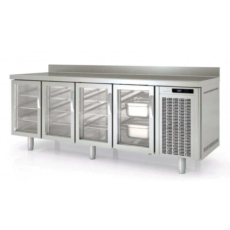 Unsere Bäckereikühltische aus der Premium-Serie überzeugen mit modernem Design, hoher Funktionalität, Langlebigkeit sowie einer hochwertigen Verarbeitung. Dank des idealen Temperaturbereichs von -2°C bis +8°C können Sie Ihre Lebensmittel optimal gekühlt lagern. Das hier verwendete Temperatur-Messsystem vemeidet zu häufiges Anspringen des Aggregats und arbeitet daher besonders energiesparsam und umweltschonend. Sobald die Produkte im Inneren die gewünschte Temperatur erreicht haben, sinkt der Energieverbrauch beträchtlich. Unsere Premium-Bäckereiühltische bieten eine perfekte Mischung zwischen Arbeitsfläche und Lagerfläche.
