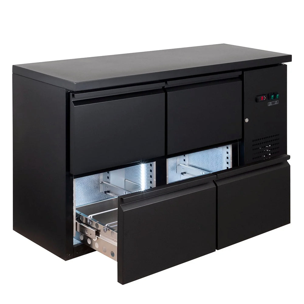 Modernes Design und hohe Funktionalität zeichnen unsere Barkühltische der Serie ECO aus. Sie ermöglichen eine optimale Lagerung der Getränke durch den idealen Temperaturbereich von +2°C bis +8°C. Mit einer Bautiefe von 520 mm und einer Bauhöhe von 840 mm sind die Barkühltische zudem besonders platzsparend - was gerade im oft beengten Barbereich besonders wichtig ist.