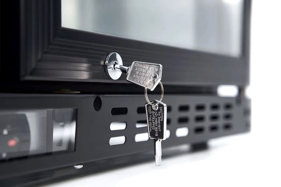 - Mit 2 selbstschließenden, doppeltverglasten Klapptüren