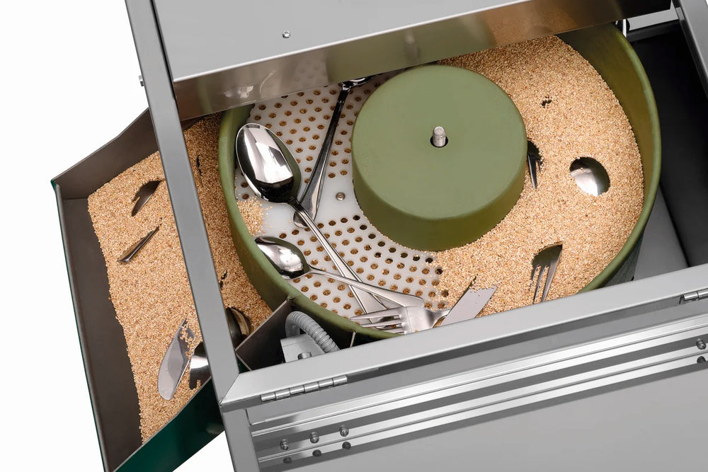 - Durch die Reibung am Granulat wird das Besteck getrocknet und poliert
