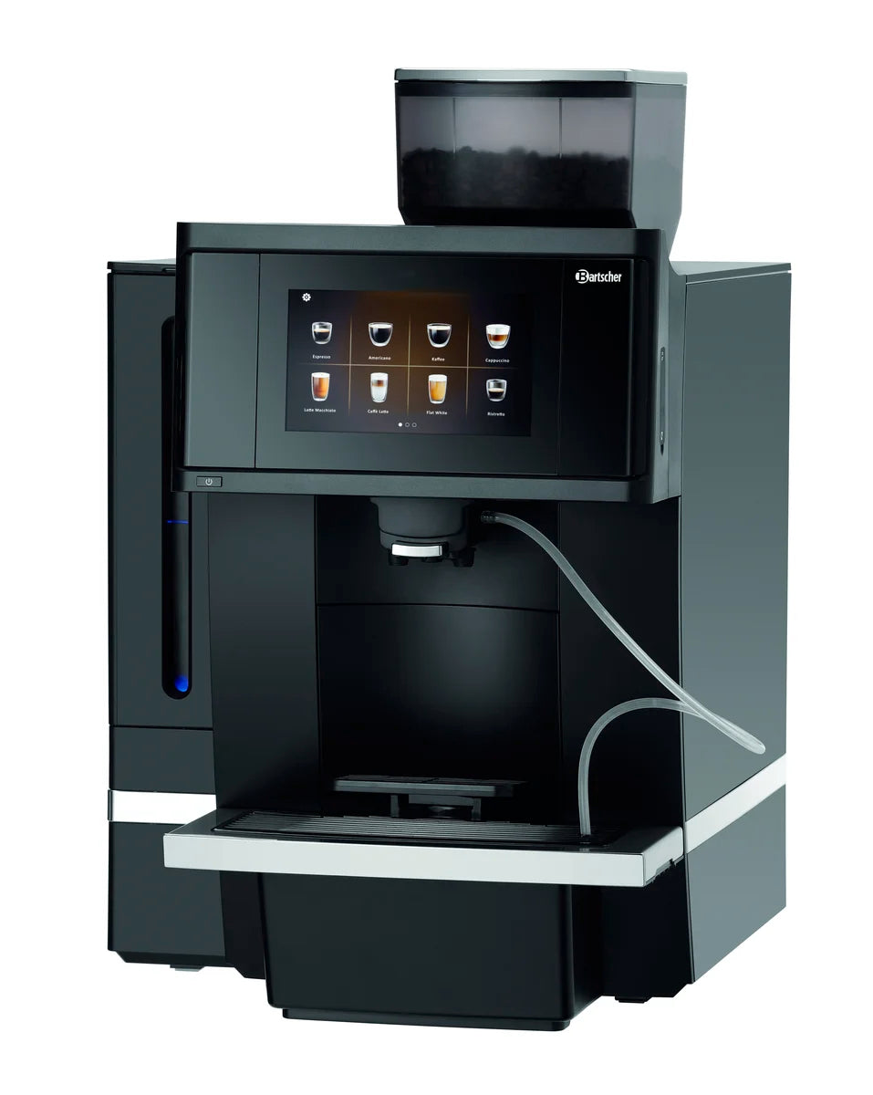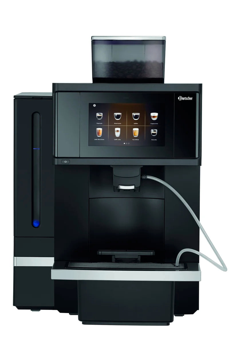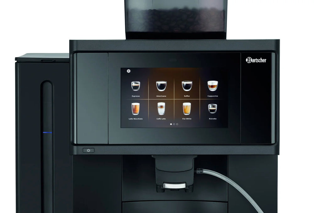 Der Vollautomat Comfort von Bartscher überzeugt besonders durch die einfache und individuelle Bedienung über das 7-Zoll Touch-Display und lässt sich mit bis zu 10 ausgesuchten Videos über einen USB-Anschluss bespielen. Es können bis zu 23 vorprogrammierte Kaffee-Variationen hinterlegt werden, die zu einem frisch gebrühten Cappuccino, Espresso, Milchkaffee und Co. einladen. Durch den 6 Liter Wassertank und einen zusätzlichen Festwasseranschluss kann je nach Betrieb zwischen beiden Wasserversorgungsmöglichkeiten gewechselt werden.