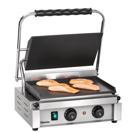 Angebranntes Gargut „Ade“ – Die optimierte Kontaktgrill-Serie Panini-T ist neben der bekannten soliden und zuverlässigen Bauweise auch mit einem Timer und integriertem Signalton ausgestattet.