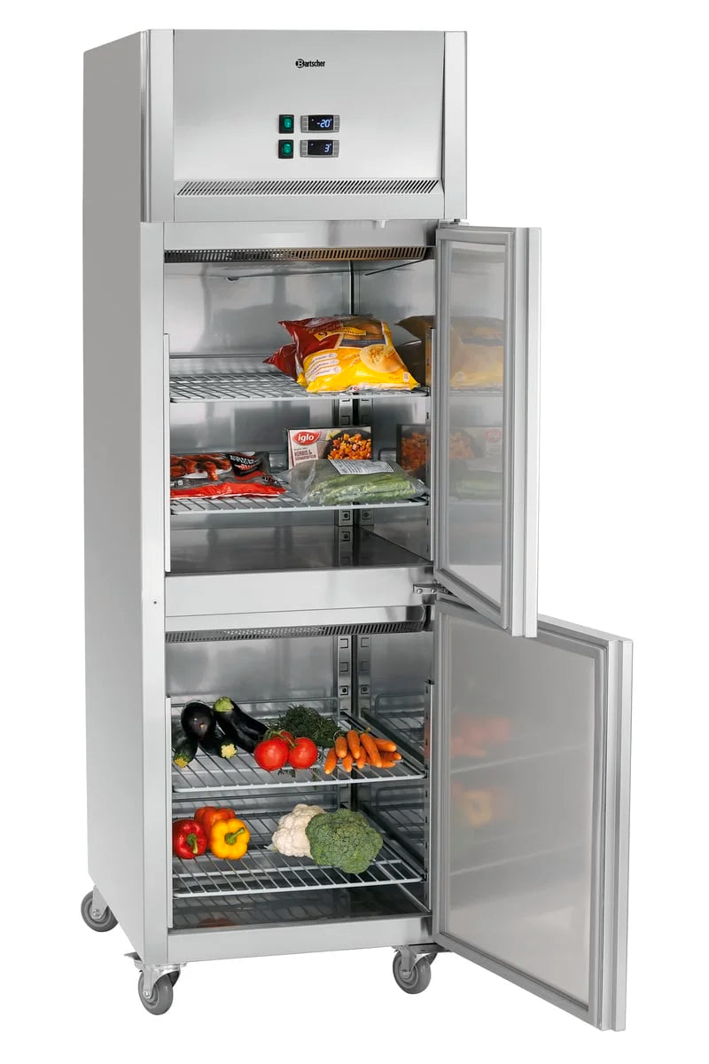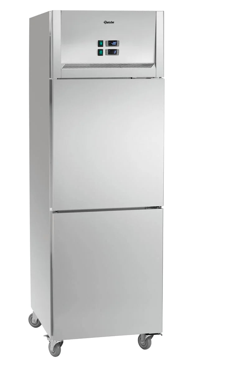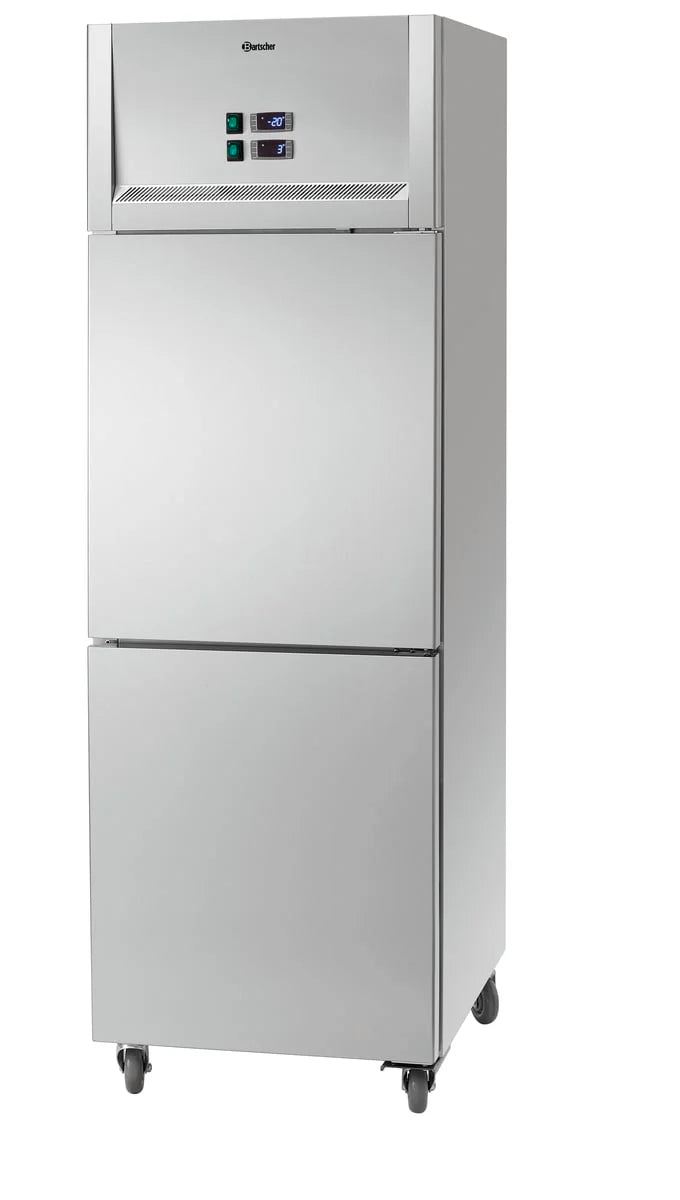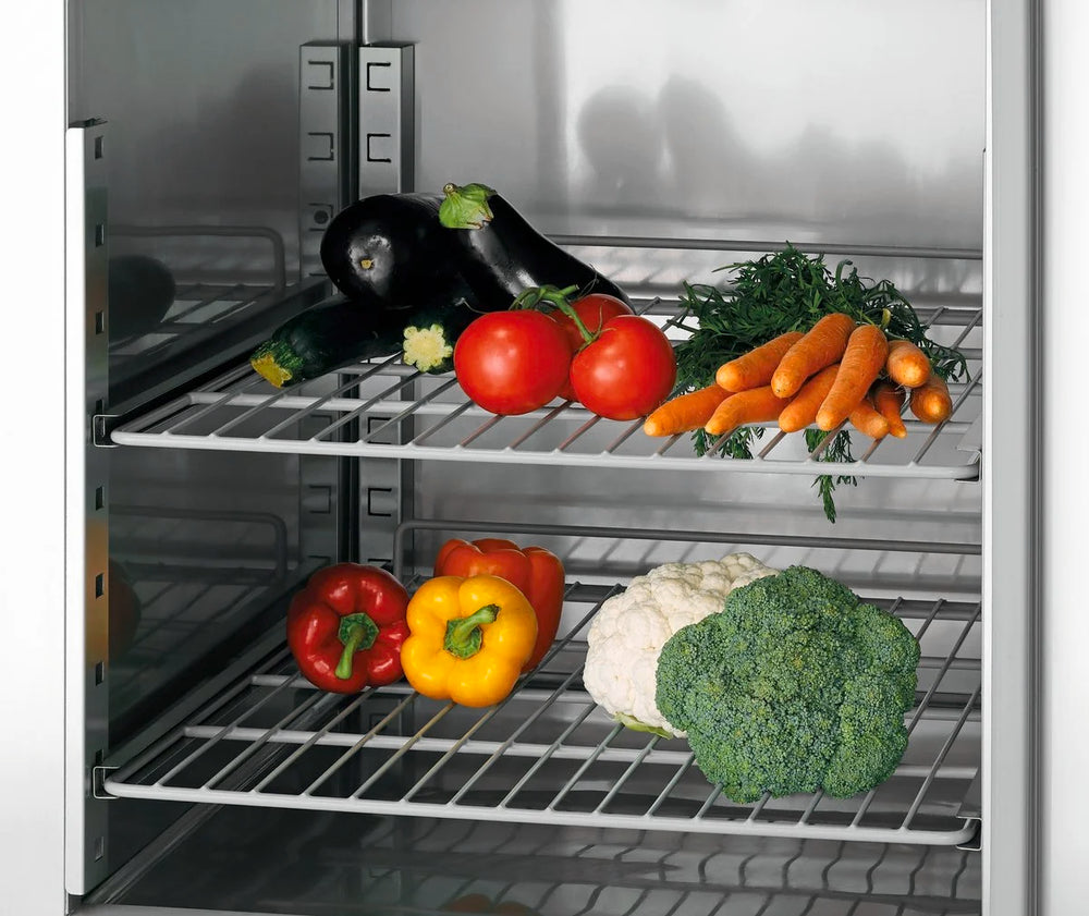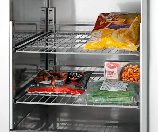 Das Kombigerät vereint Kühlung und Tiefkühlung und bietet somit einen schnellen Zugriff auf gekühlte und tiefgekühlten Waren bei geringem Platzbedarf. Die GN-fähigen Auflageschienen können sowohl für die beiliegenden Roste als auch für GN-Behälter genutzt werden.