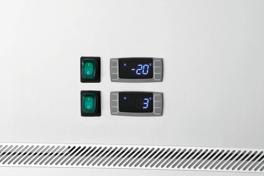 - Eigenschaften: 4 Lenkrollen, 2 feststellbar ,auch für den Einschub von GN-Behältern ,Je 1 Ein-/Ausschalter für Kühlung und Tiefkühlung ,oben Tiefkühlung | unten Kühlung
