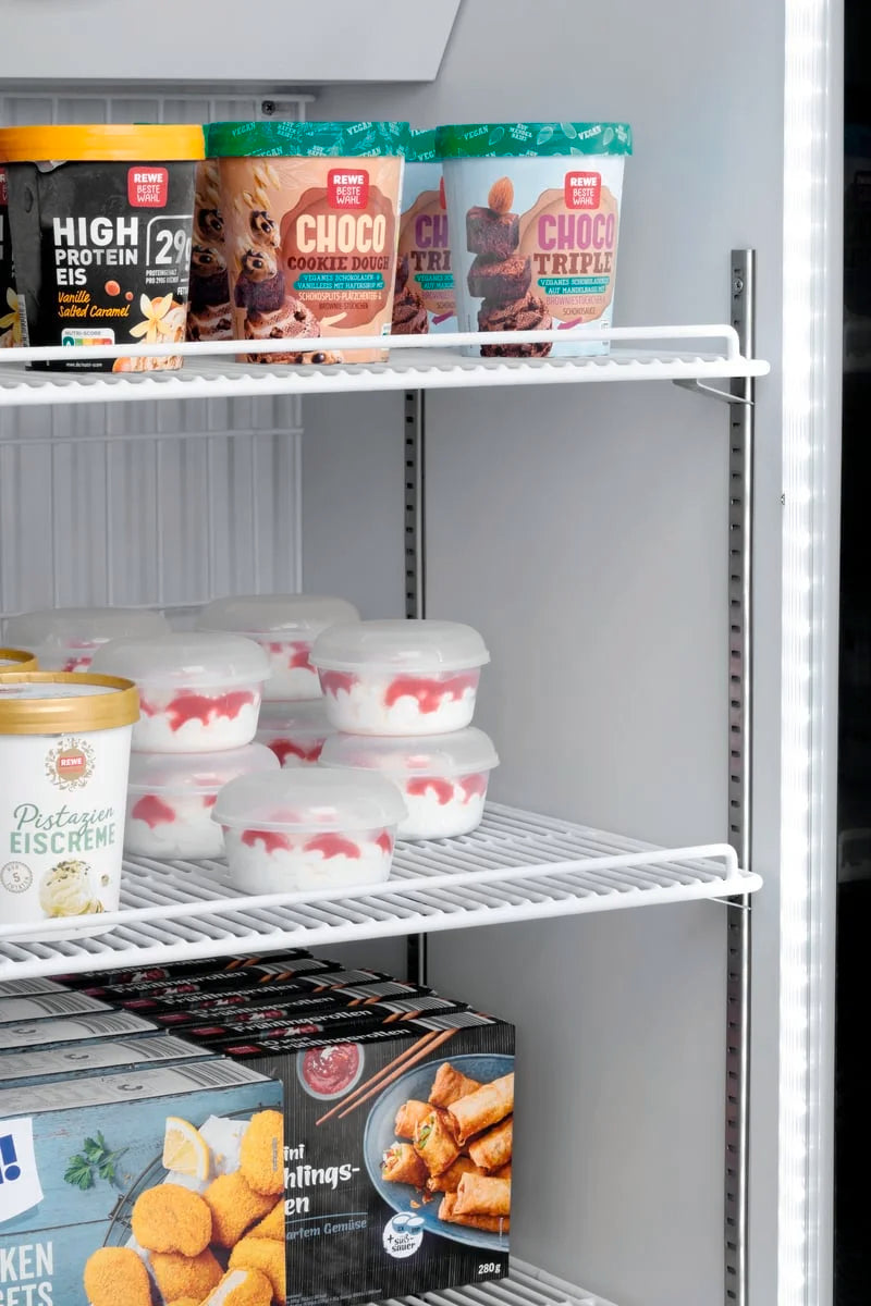 - Eigenschaften: 4 Lenkrollen, 2 feststellbar ,LED-Beleuchtung, separat schaltbar ,links Kühlung | rechts Tiefkühlung