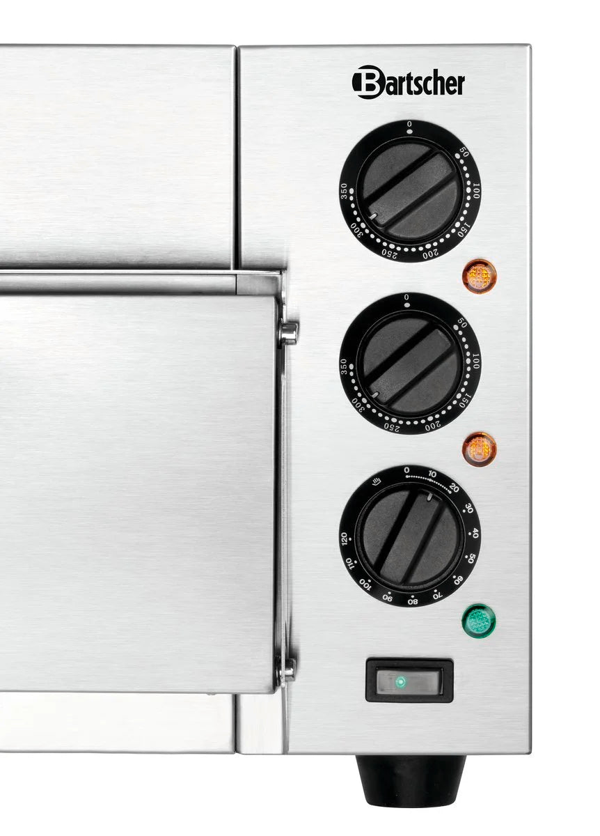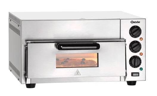Der kompakte Pizzaofen ist die ideale Wahl für Bistros, Imbissbetriebe oder Snackbars. Mit separat schaltbarer Ober- und Unterhitze lassen sich auf dem Steinboden Pizzen mit einem Durchmesser von 40 cm knusprig backen. Sichtfenster und Timer sorgen für perfekte Ergebnisse.