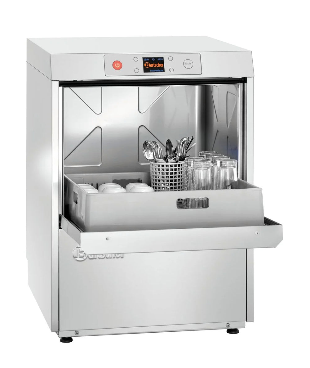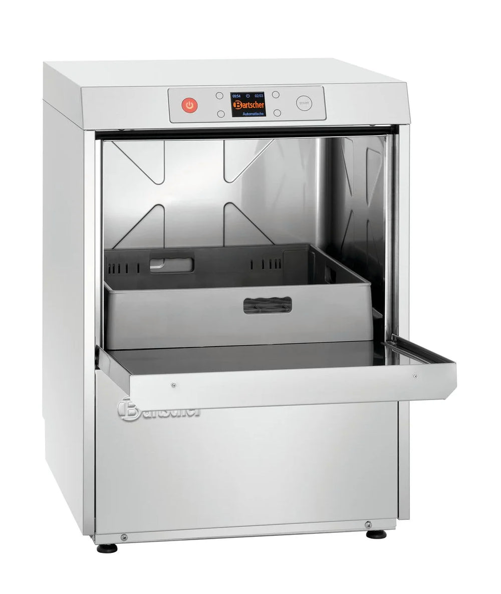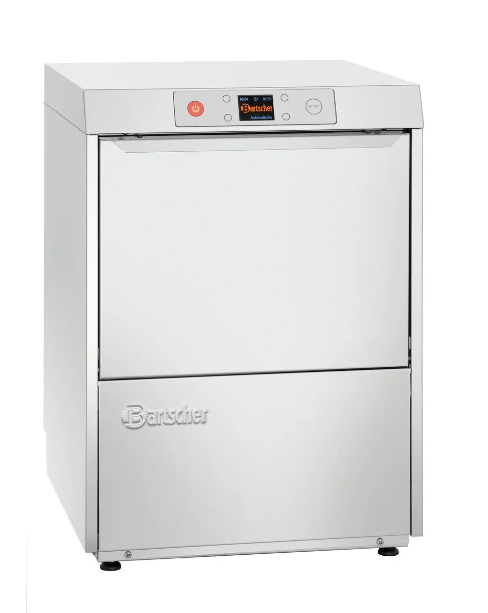 - Mit eingebautem Reiniger- und Klarspüldosierer, Laugenpumpe sowie einem Enthärter