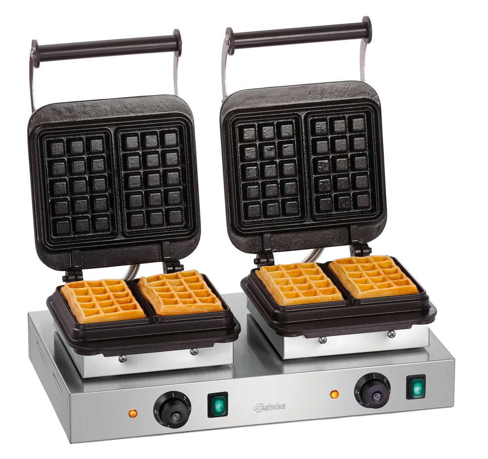 Das Waffeleisen mit 2 Backeinheiten in Brüsseler-Waffelform überzeugt nicht nur durch die hohe Wärmeleitfähigkeit der gusseisernen Backplatten, die robuste Ausführung und die Leistungsstärke. Die beiden separaten Ein-/Ausschalter ermöglichen zudem eine unkomplizierte sowie bedarfsgerechte Nutzung.