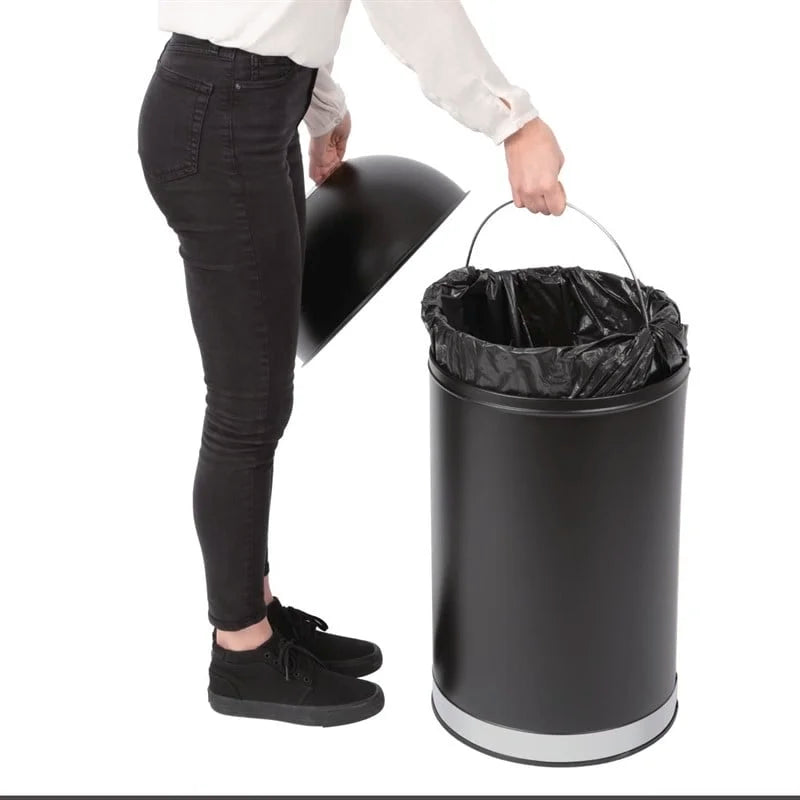 - Attraktiver, mattschwarzer Abfalleimer mit Pulverbeschichtung. Die kleine Öffnung verhindert, dass der Abfalleimer zu voll wird.