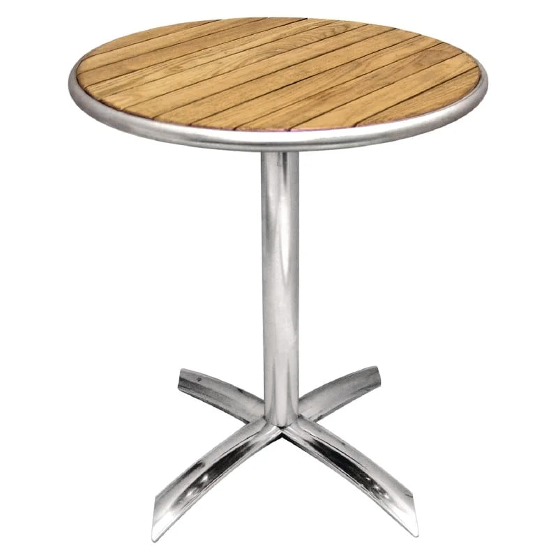 - elegante, runde Holztischplatte passend zu den Aluminium - Eschenholzstühlen Bolero