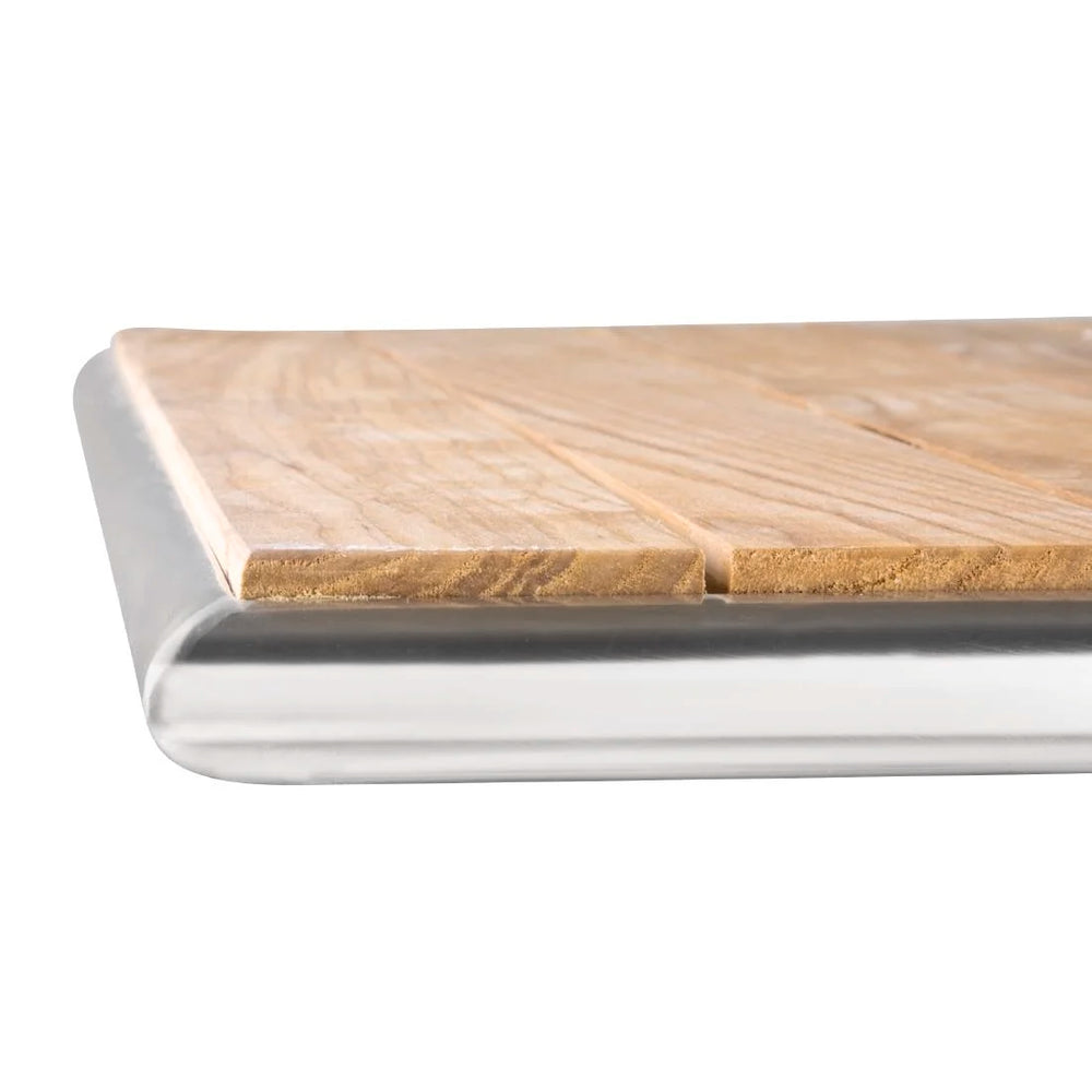 - Eschenholzplatte von einem Aluminiumrand umschlossen