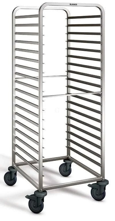 Regalwagen von B.PRO stehen für höchste Qualität. Egal ob es um Transport, kurz- oder langfristige Lagerung geht, die robusten Regalwagen sind für jeden Einsatzbereich geeignet. Alle B.PRO Regalwagen sind aus rostfreiem Edelstahl gefertigt. Die Auflageschienen verfügen über ein spezielles U-Profil welches als integrierte Kipp- und Durchschubsicherung fungiert, so dass die eingelagerten Tabletts und GN-Behälter sicher transportiert werden können. Querstreben und der umlaufende Bodenrahmen erhöhen die Gesamtstabilität der Wagen und erlauben dennoch eine Nutzung aller Auflageschienen. Die Regalwagen sind glatt gearbeitet und haben keine Schmutzkanten, dies sorgt für maximale Hygiene.