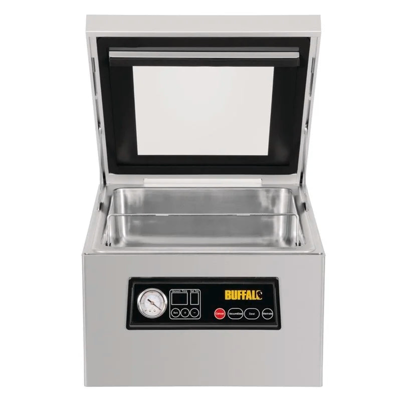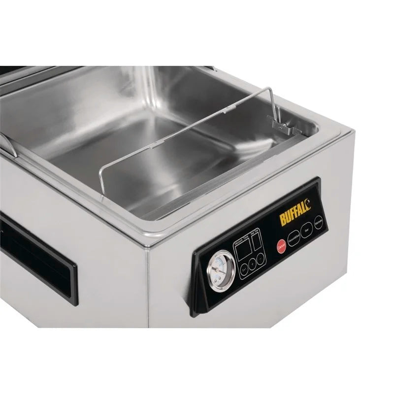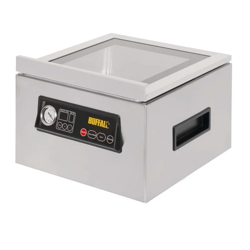 Die Buffalo digitale Vakuumiermaschine mit 350 W Leistung ist die ideale Lösung, um Lebensmittel schnell, sicher und luftdicht zu verpacken. Sie verlängert die Haltbarkeit frischer Produkte, reduziert Lebensmittelabfall und ist perfekt für Sous-Vide-Vorbereitungen. Dank robuster Edelstahlausführung und digitaler Steuerung ist sie besonders benutzerfreundlich und langlebig.