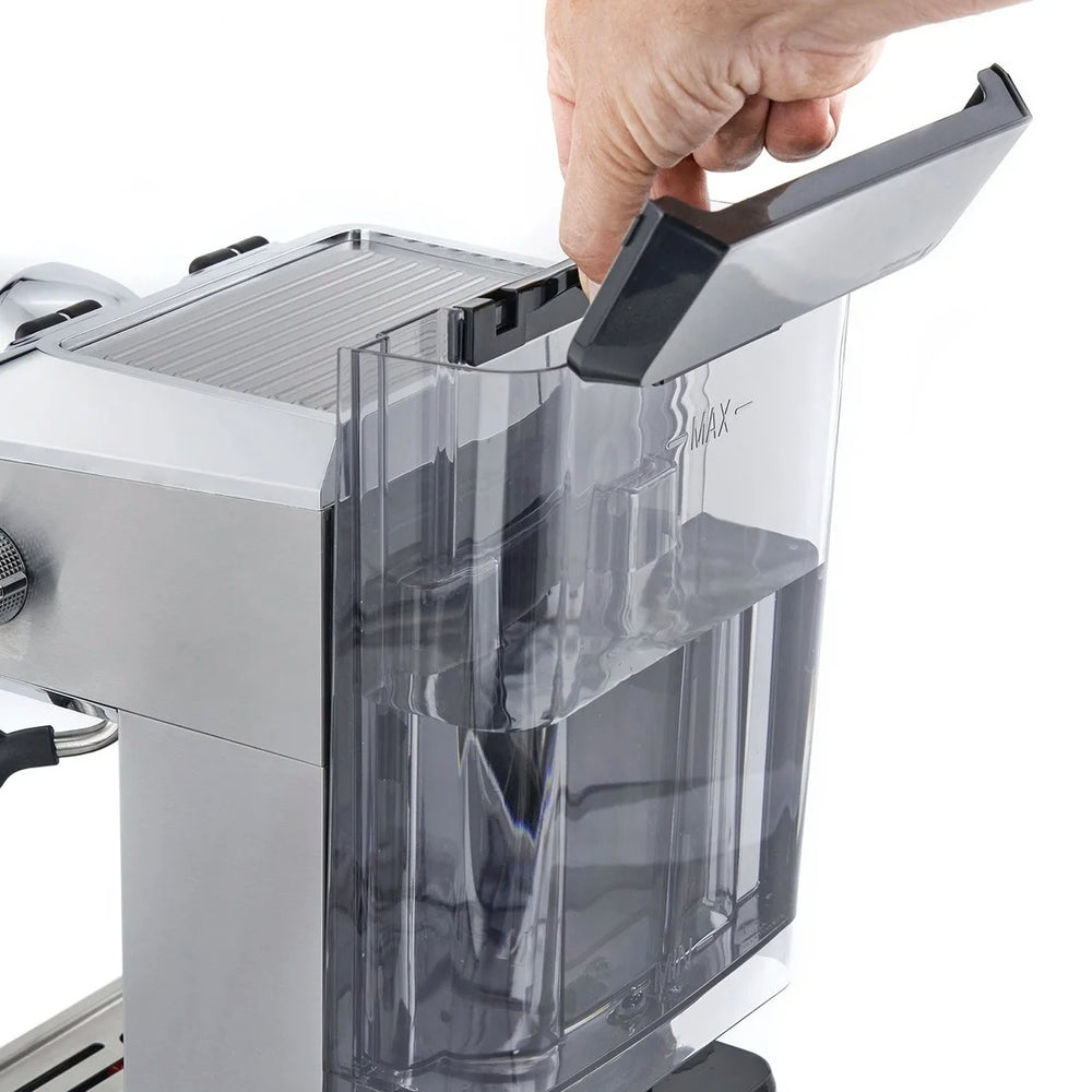 - Zubehör: 3 Filtereinsätze, Tamper, Milchkännchen, Portionierlöffel