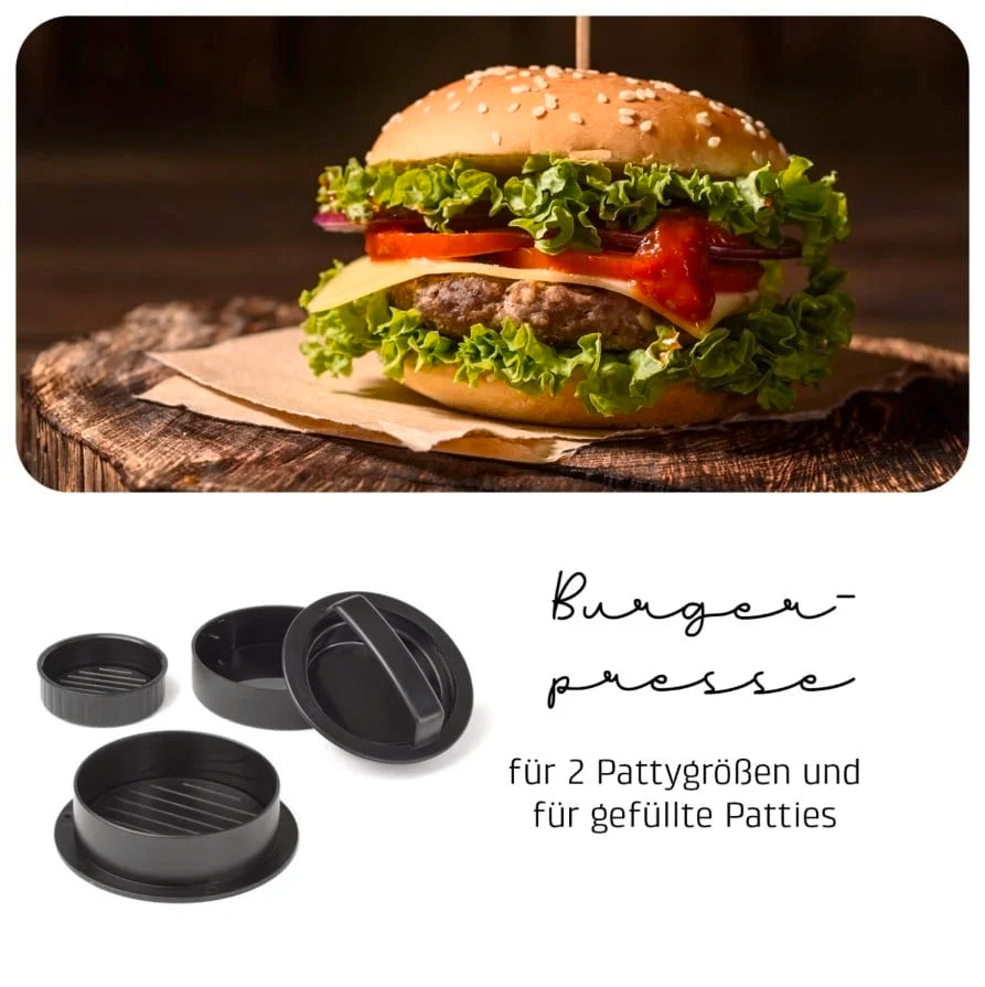 - Burgerpresse für 2 Pattygrößen und für gefüllte Patties