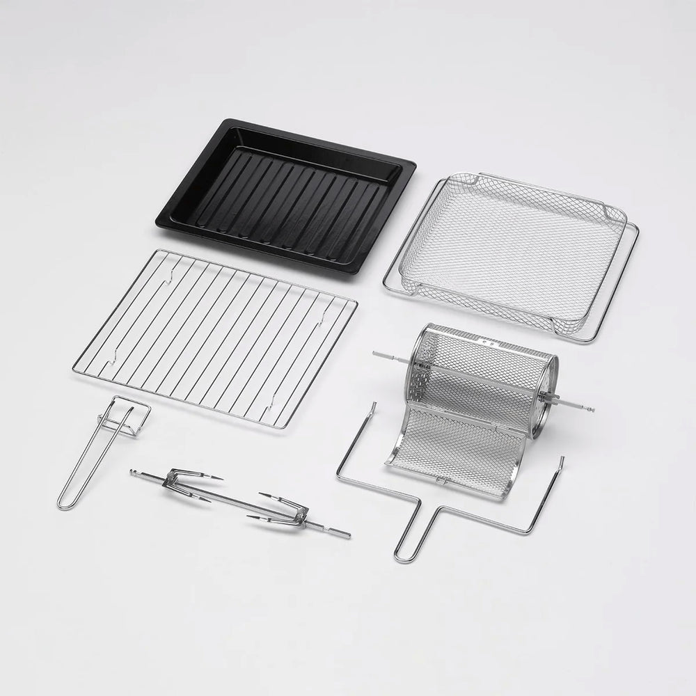 - Extra großer Frittierkorb, Frittiertrommel, Backblech, Grillrost, Drehspieß, 2 Entnahmehilfen