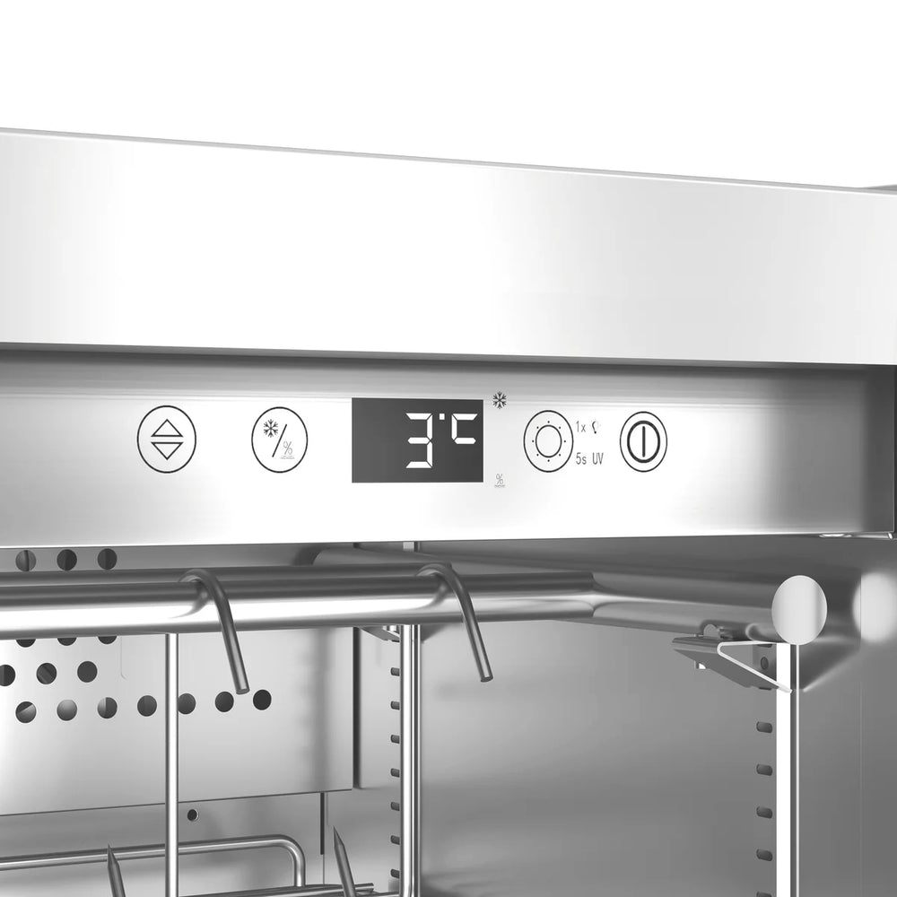 Unter Dry-Aging wird das älteste Trockenreifungsverfahren der Fleischreifung verstanden. Hierbei wird das Fleisch bei gewisser Luftfeuchtigkeit und Temperatur gereift und dient zur Entwicklung des besonders zarten und aromatischen Geschmacks. Dieses Verfahren lässt sich auch bei anderen Lebensmitteln, wie beispielsweise Käse anweden. Dry-Aging dient also dazu, den Geschmack von Lebensmitteln zu intensivieren und weiter zu entwickeln. Somit ist der DryAged Master 125 ein unverzichtbarer Bestandteil für das Reifen von hochwertigem Fleisch.