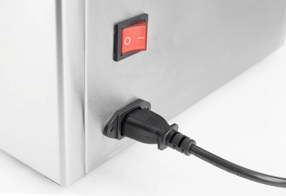 - Geschlossene Vakuumkammer mit gewölbtem, tranparentem und extra starkem Glasdeckel (Temperglas)