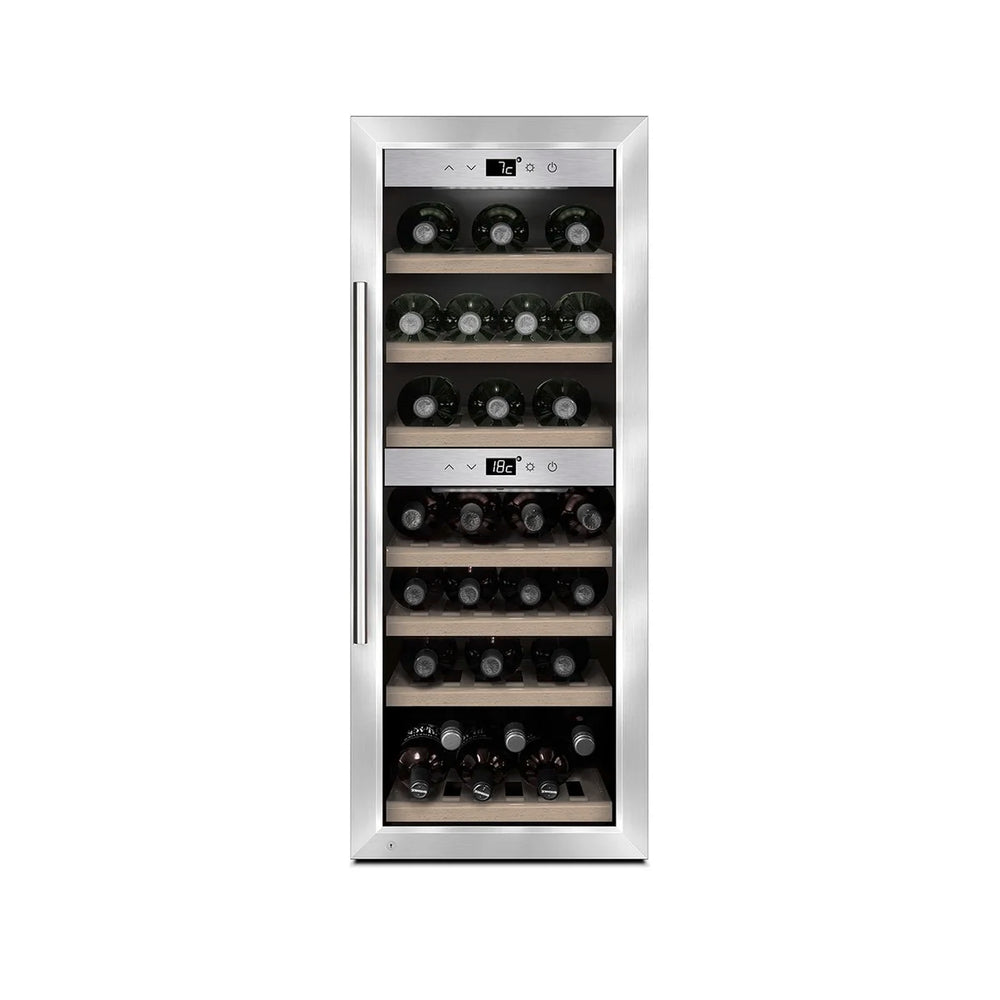 - Zwei getrennte Temperaturzonen, einzeln regelbar für Weiß- & Rotwein