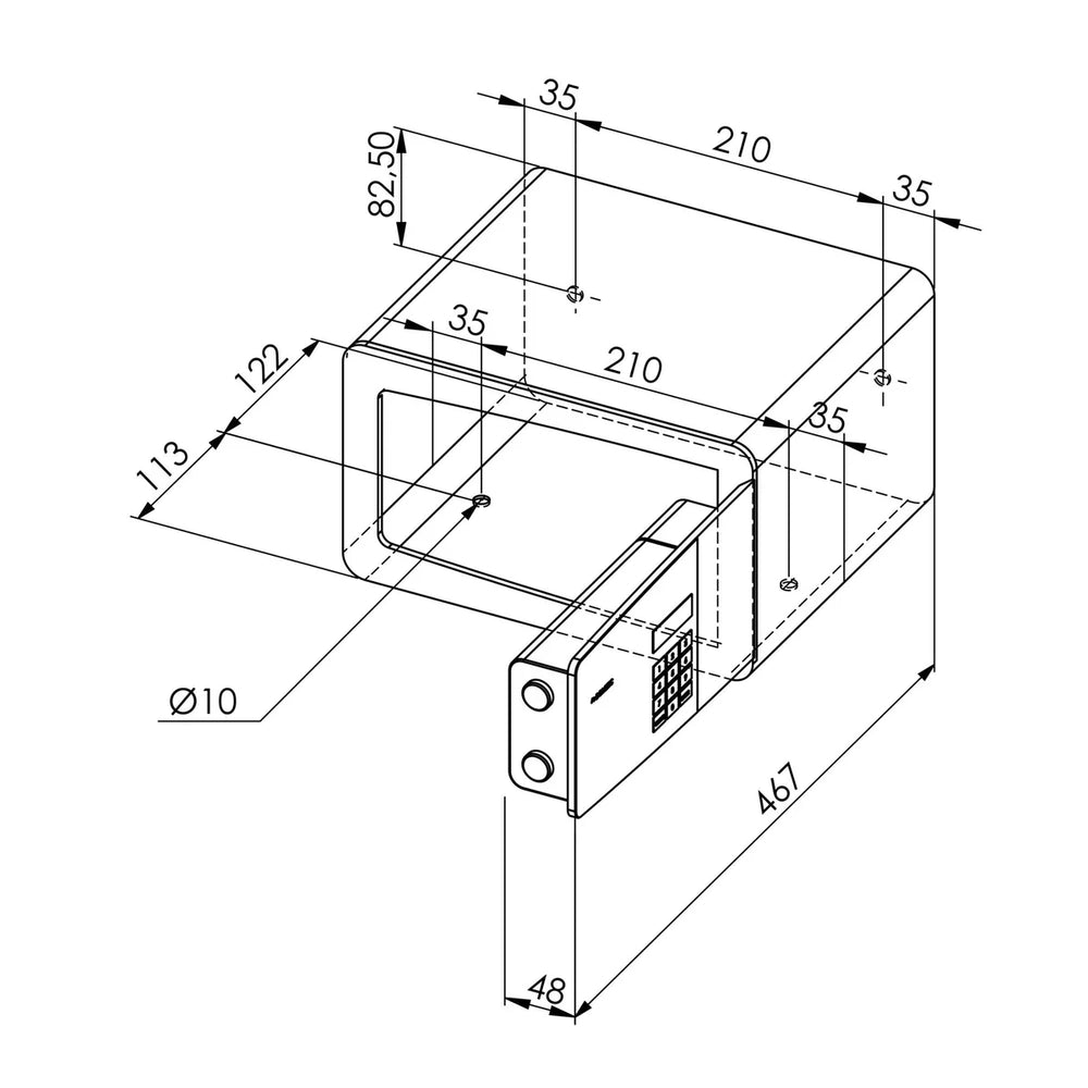 - Einfache Montage: Bohrungen für Wand- oder Bodenmontage vorgesehen