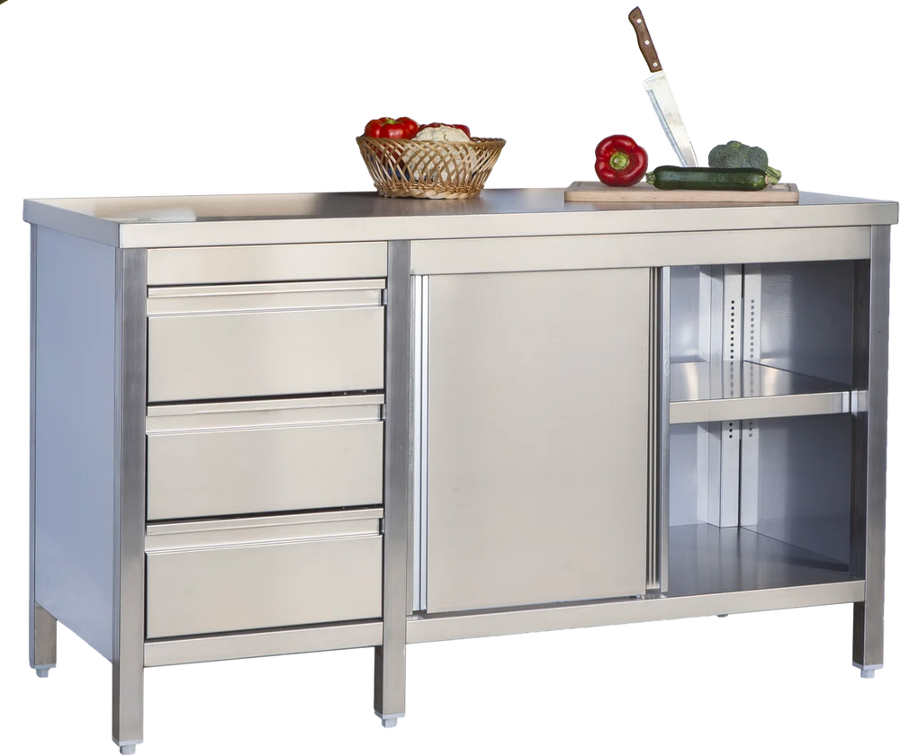 Edelstahl Arbeitsschrank Profi mit Schiebetüren und 3 Schubladen 2000 x 600 x 850 mm