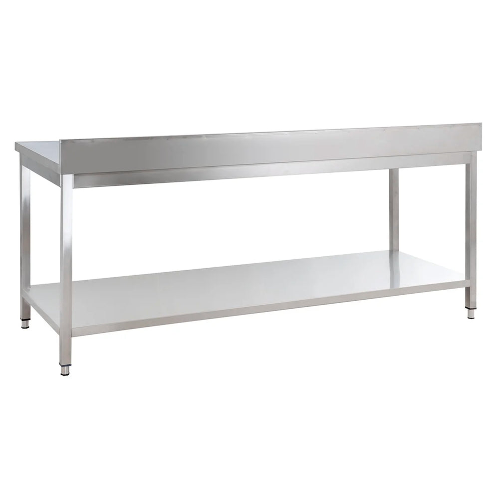 Edelstahl Arbeitstisch Basic 20x6 mit Grundboden und Aufkantung, zur Selbstmontage