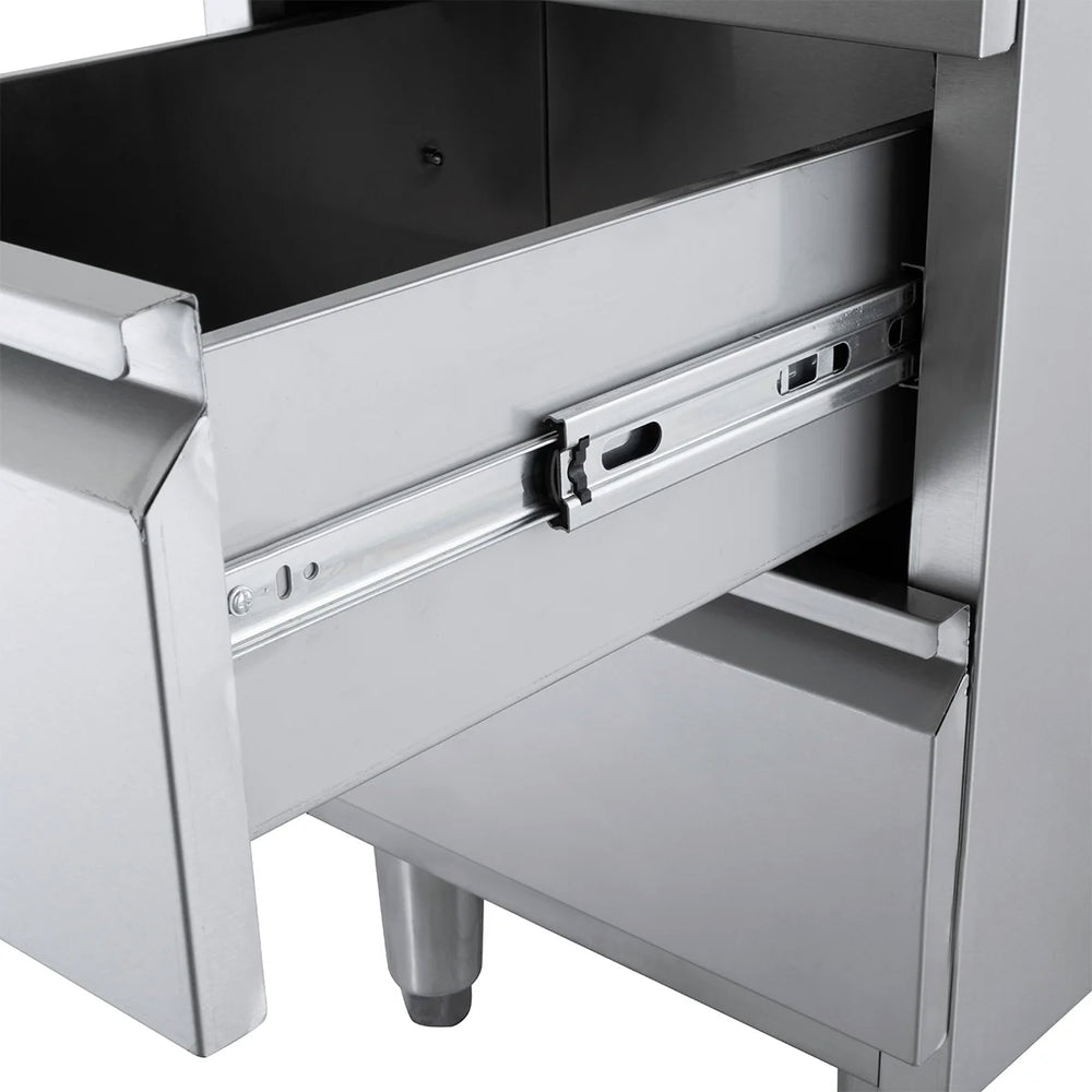 Die BASIC-Schubladenschränke sind vollständig aus hochwertigem Edelstahl gefertigt und voll aufgebaut. Durch die wasserabstoßende und schallgedämmte Unterplattenverstärkung sind unsere Schubladenschränke besonders robust und langlebig.