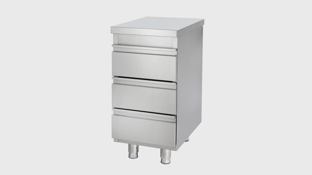 - 3-er Schubladenschrank aus hochwertigem Chrom-Nickel-Stahl AISI 201