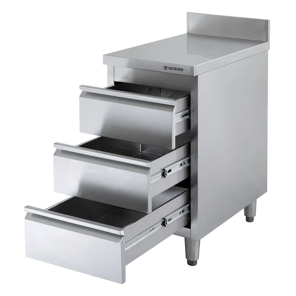 - 3-er Schubladenschrank aus hochwertigem Edelstahl AISI 201