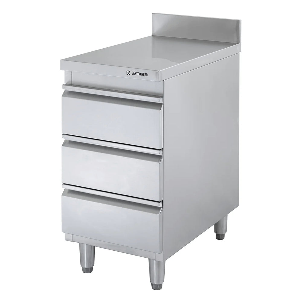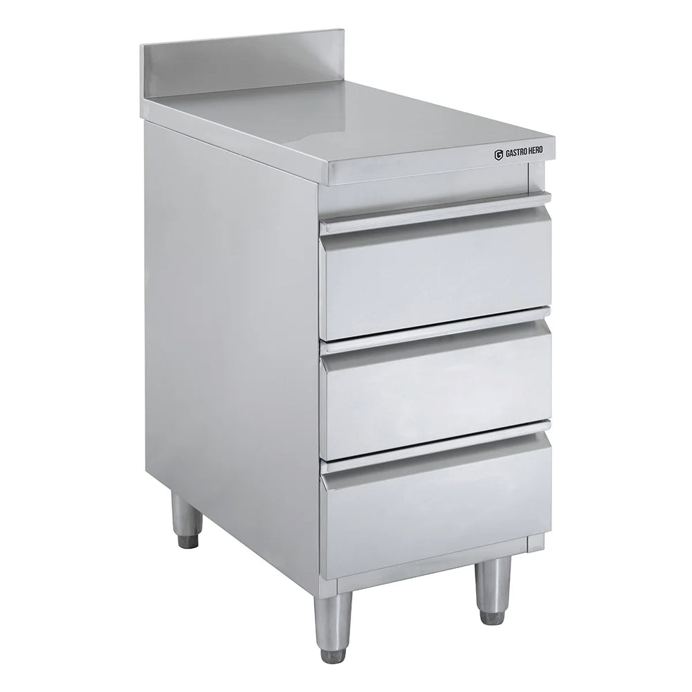Edelstahl-Schubladenschrank BASIC 3er Einheit 700 mit Aufkantung, AISI 201