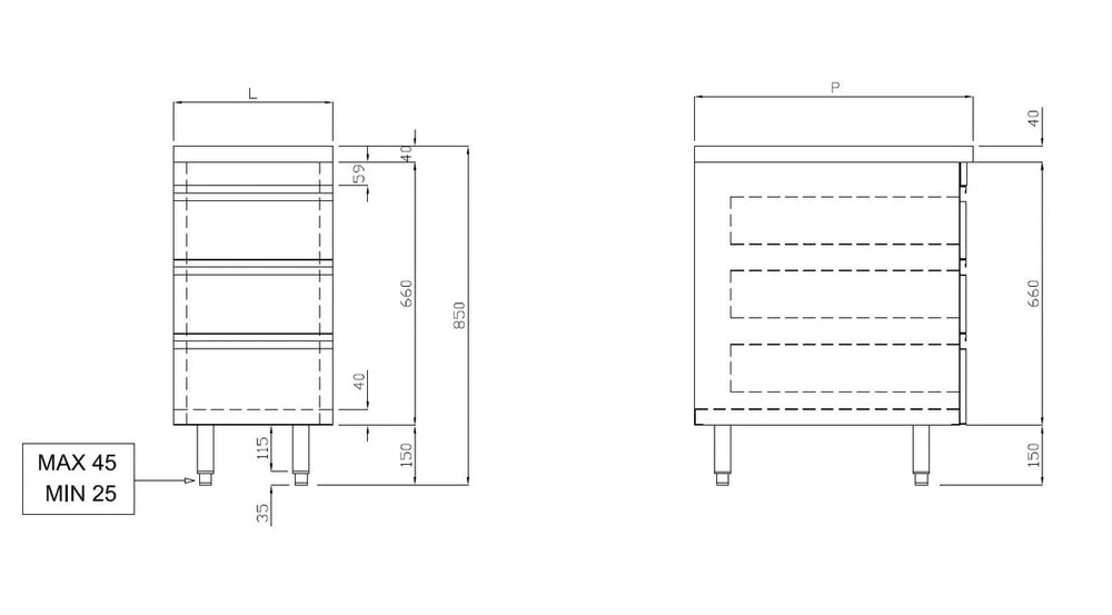 Die ECO-Schubladenschränke sind vollständig aus hochwertigem Chromstahl Scotchbrite gefertigt und voll aufgebaut (außer die Füße). Durch die wasserabstoßende und schallgedämmte Unterplattenverstärkung sind unsere Schubladenschränke besonders robust und langlebig.