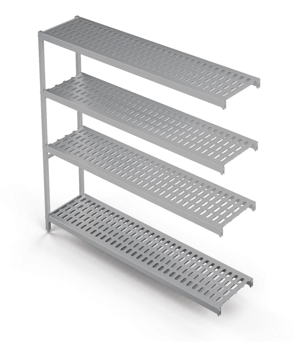 Unser passendes Regalsystem für unsere Kühl- und Tiefkühlzellen PROFI als Baukastensystem Made in Europe. Sie erwerben ein Standregal und können entsprechend andere Regale einfach einhängen um z. B. die gewünschte L- oder U-Form zu erhalten. Für eine hygienische und gesetzeskonforme Lebensmittellagerung in einer Kühl- bzw. Tiefkühlzelle sind Regale unabdingbar. Gefertigt aus einem stabilen eloxierten Aluminiumgerüst mit Ablagen aus lebensmittelgeeignetem Polyethylen eignen sich unsere PROFI Regale perfekt für Ihre Zelle.