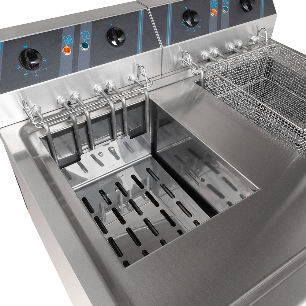 Unsere Elektro-Fritteusen der hochwertigen Profi Serie überzeugen, neben einem modernen Design, durch eine besonders hohe Leistungsstärke. Wir bieten mit diesen Qualitätsprodukten aus Italien langlebige und effiziente Kochgeräte, die für Ihre Profiküche unerlässlich sind.