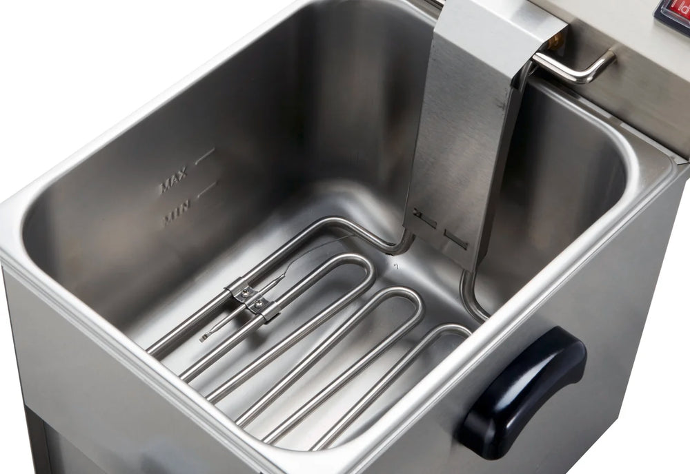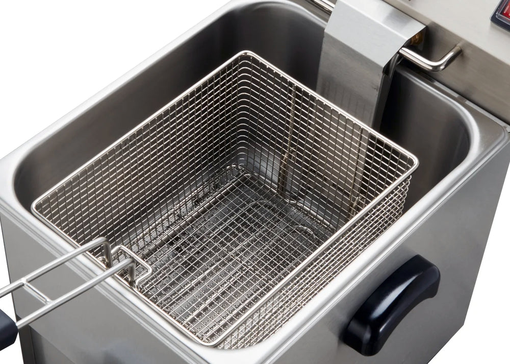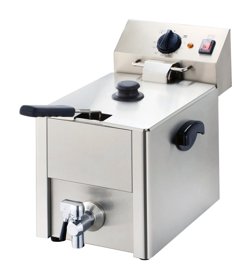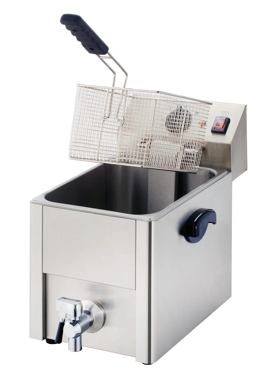 Unsere Elektro-Fritteuse ECO 10 Liter mit Ablasshahn überzeugt, neben einem modernen Design, durch eine besonders hohe Langlebigkeit und einem sehr guten Preis-Leistungs-Verhältnis. Durch einen vorhandenen Ablasshahn können Sie das Öl schnell und sicher ablassen. Wir bieten Ihnen mit diesem Qualitätsprodukt ein langlebiges und effizientes Kochgerät für Ihre Profi Küche.