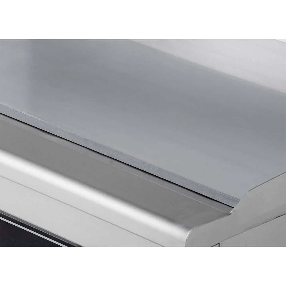 - die Grillplatte umfasst einen dreiseitigen Spritzschutz für optimale Hygienesicherung