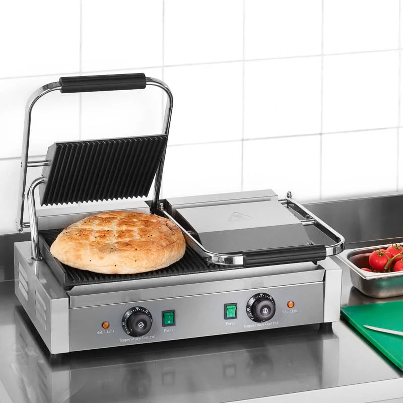 Unsere Kontaktgrills überzeugen neben einem modernen und kompakten Design, durch eine besonders hohe Leistungsstärke. Langlebige und effiziente Grillgeräte, die für Ihre Profiküche unerlässlich sind. Anders als bei herkömmlichen Grillmethoden wird auf Kontaktgrills das Grillgut von allen Seiten gleichzeitig gegart. So lassen sich viele beliebte Gerichte wie etwa Paninis, Burger, Fleisch, Focaccia oder Sandwiches schnell und zuverlässig zubereiten. Die Lebensmittel werden mit den Kontaktgrills in kürzester Zeit gleichmäßig, knusprig gebräunt und vollständig durchgegrillt.