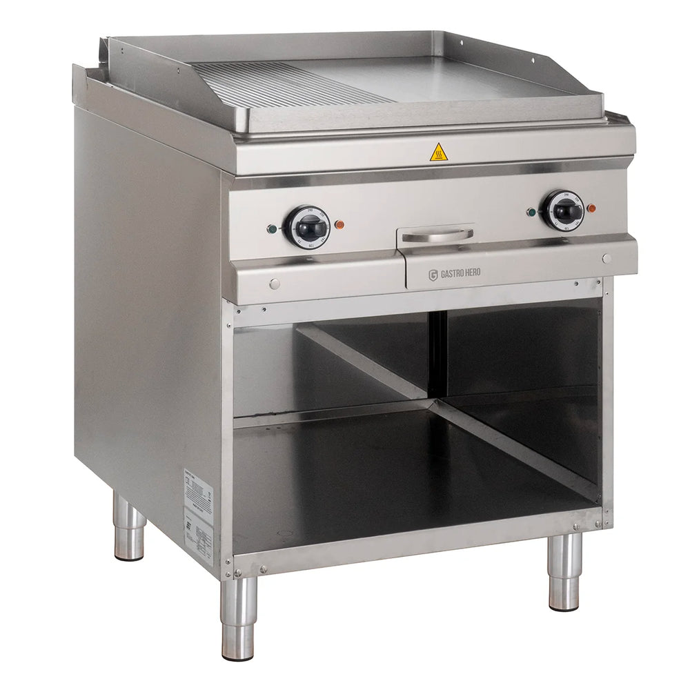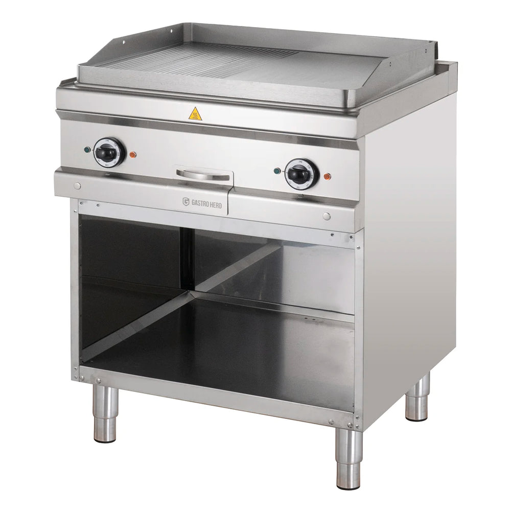 - ½ glatte und ½ gerillte Elektrogrillplatte mit offenem Unterbau