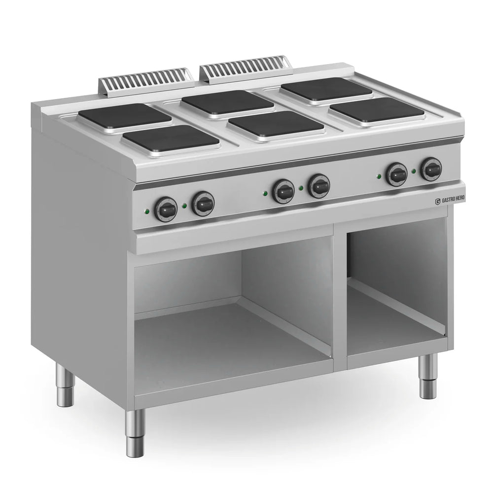 - Elektroherd mit 6 quadratischen Kochfeldern und offenem Unterbau