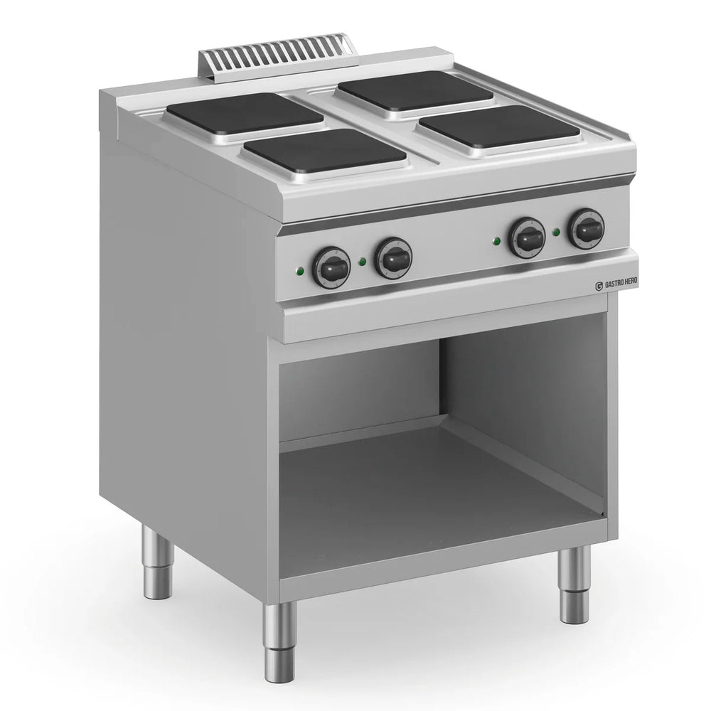 - Elektroherd mit 4 quadratischen Kochfeldern und offenem Unterbau