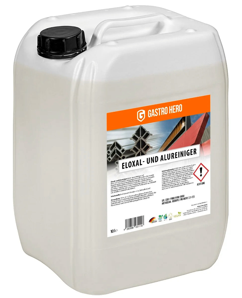 - Eloxal- und Alureiniger ist ein saurer Reiniger auf Basis von fettlösenden, reinigungsaktiven Wirkstoffen