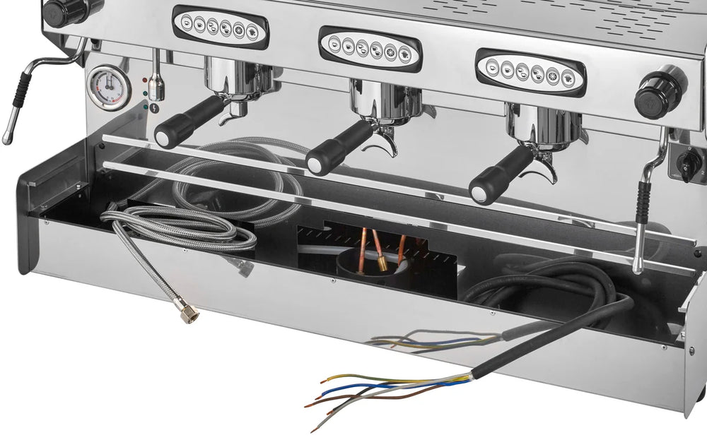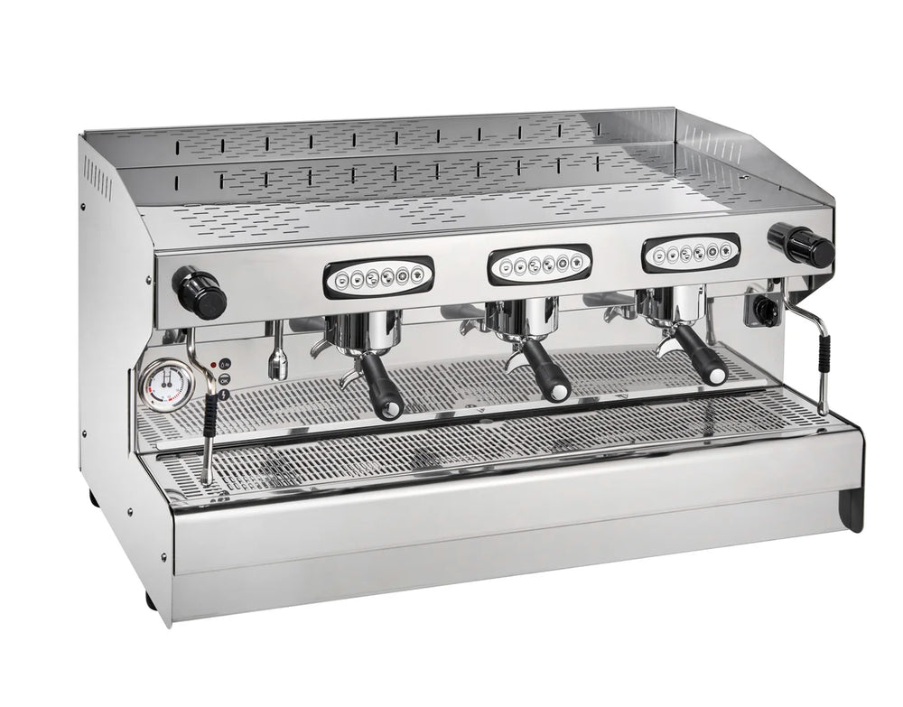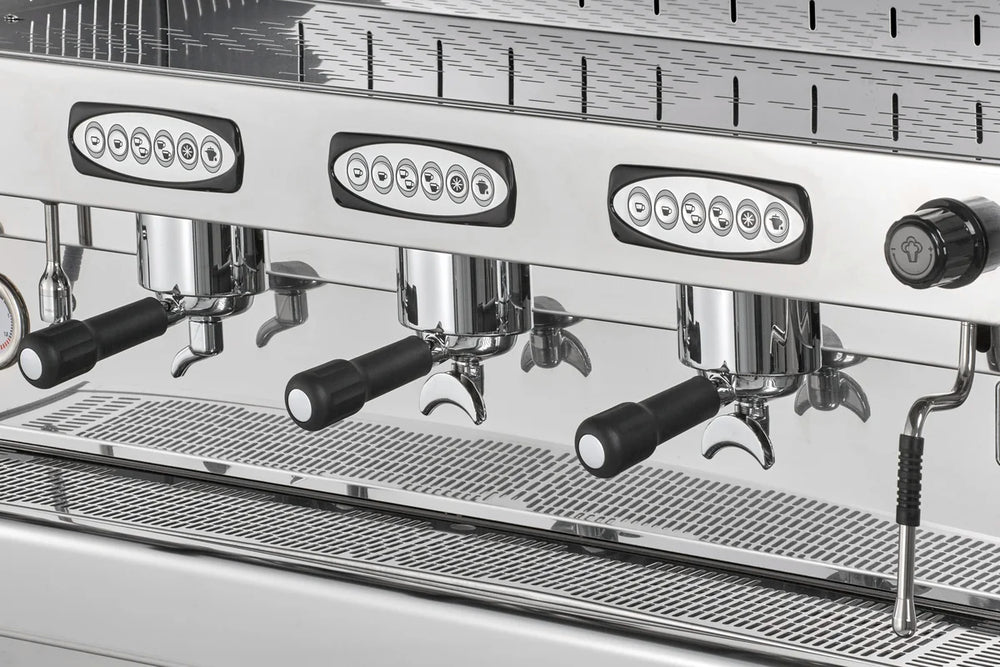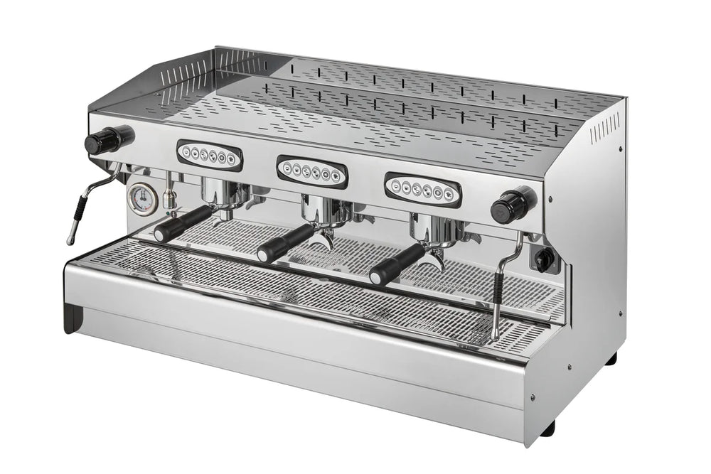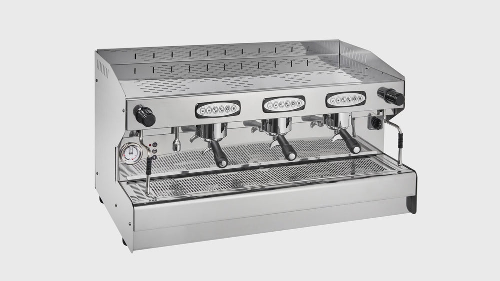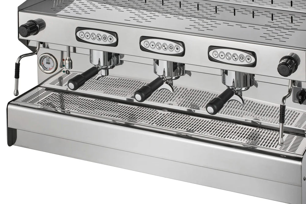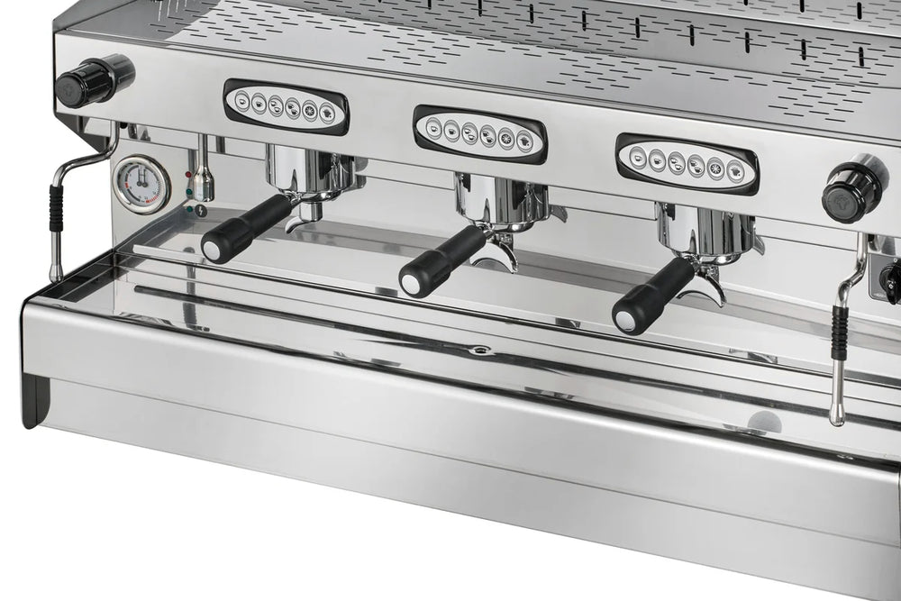 Die Espressomaschine MILANO 3 GR Automatik ist eine Siebträgermaschine mit drei Brüheinheiten und einer automatischern Wasserzuführ. Das zeitlose Design nach italienischem Vorbild passt in jedes Cafe und in jeden Gastrraum. Dank des Pre-Infusionssystems erhalten Sie eine besonders aromatische Kaffespezialität, die ihre Gäste überzeugen wird. Die einfache und anwenderfreundliche Bedienung runden dieses Qualitätsprodukt ab.