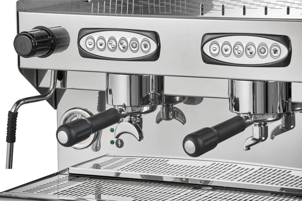 Die Espressomaschine MILANO Compact 2 GR Automatik ist eine Siebträgermaschine mit zwei Brüheinheiten und einer automatischern Wasserzuführ. Das zeitlose Design nach italienischem Vorbild passt in jedes Cafe und in jeden Gastrraum. Dank des Pre-Infusionssystems erhalten Sie eine besonders aromatische Kaffespezialität, die ihre Gäste überzeugen wird. Die einfache und anwenderfreundliche Bedienung runden dieses Qualitätsprodukt ab.